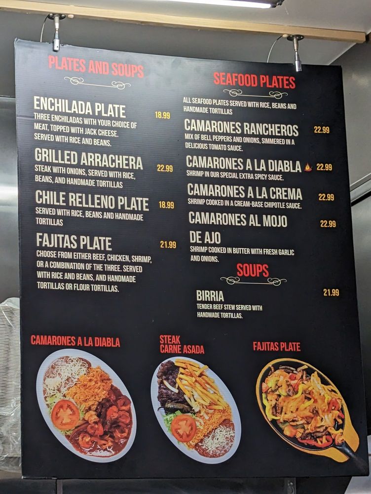 Choose from either beef, chicken, shrimp, or a combination of the . Served with rice and beans, and either handmade tortillas or corn tortillas.